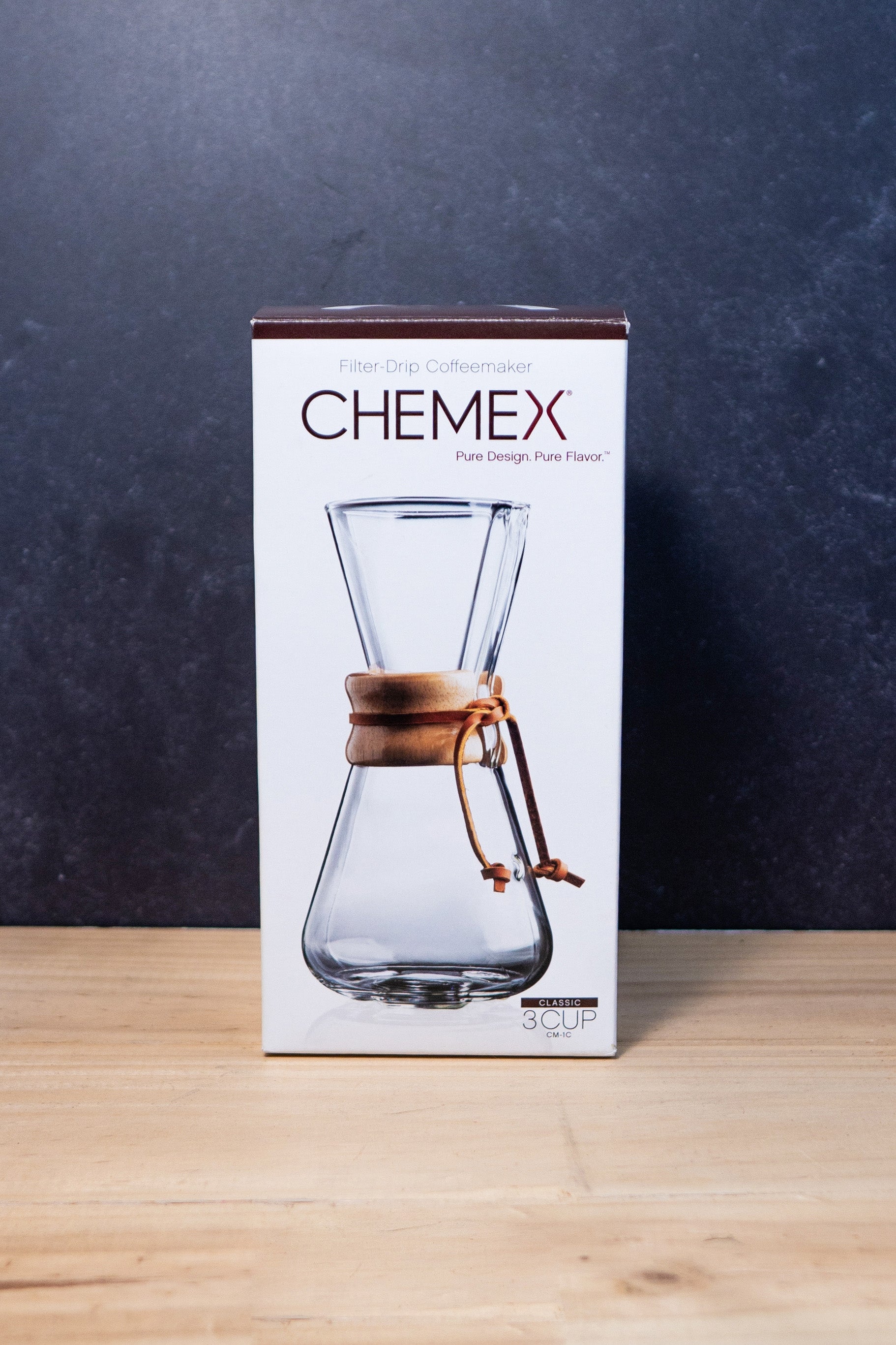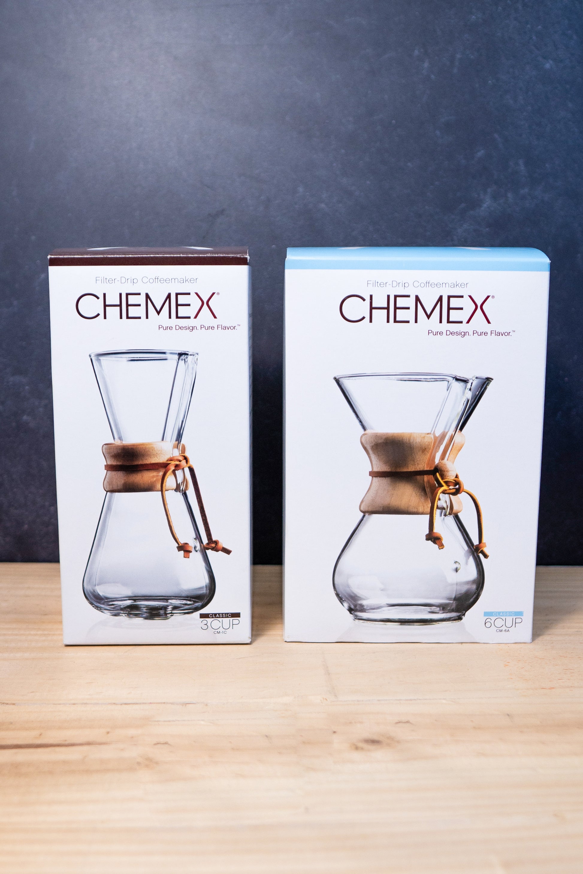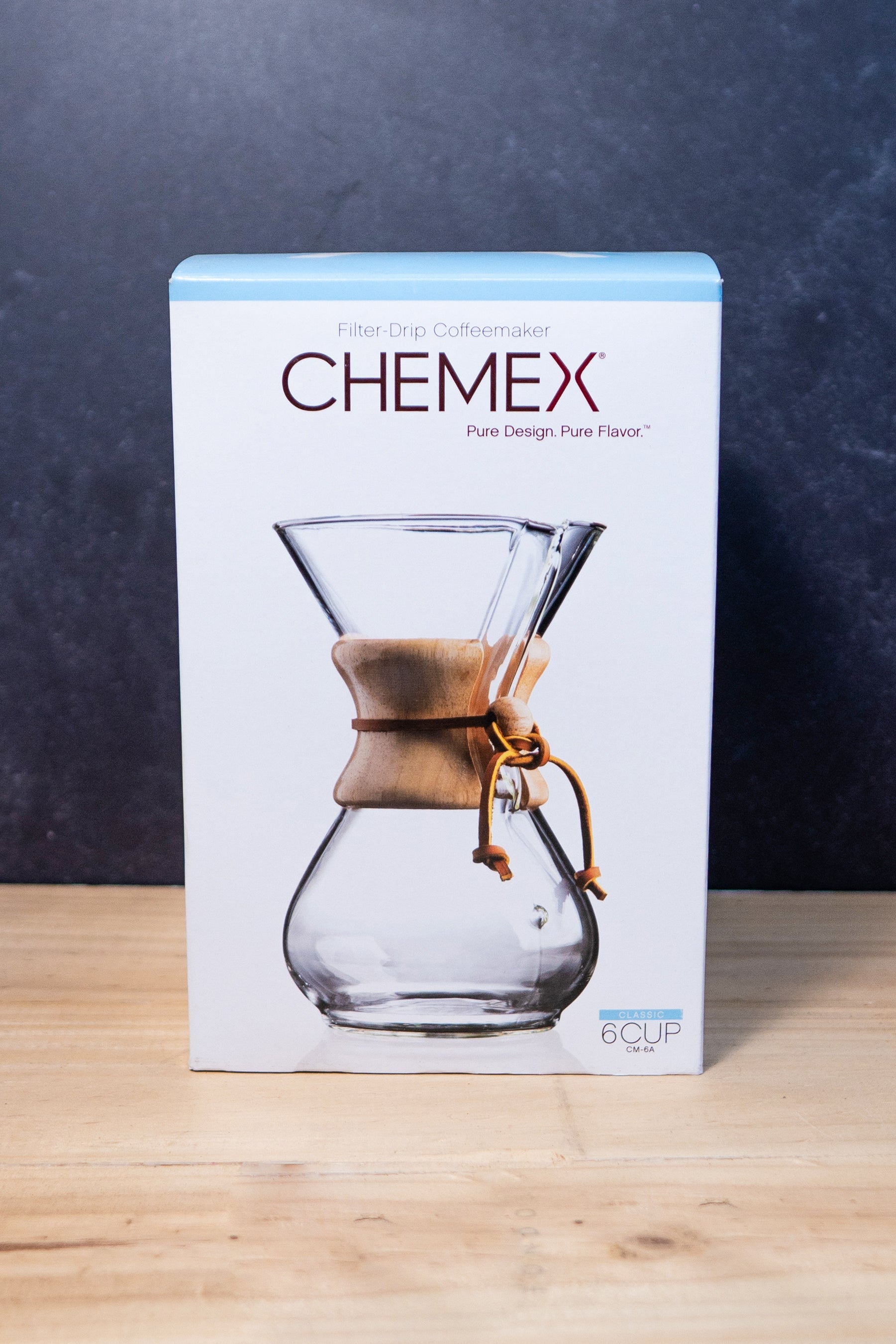 Cafetera Chemex de vidrio y mango de madera